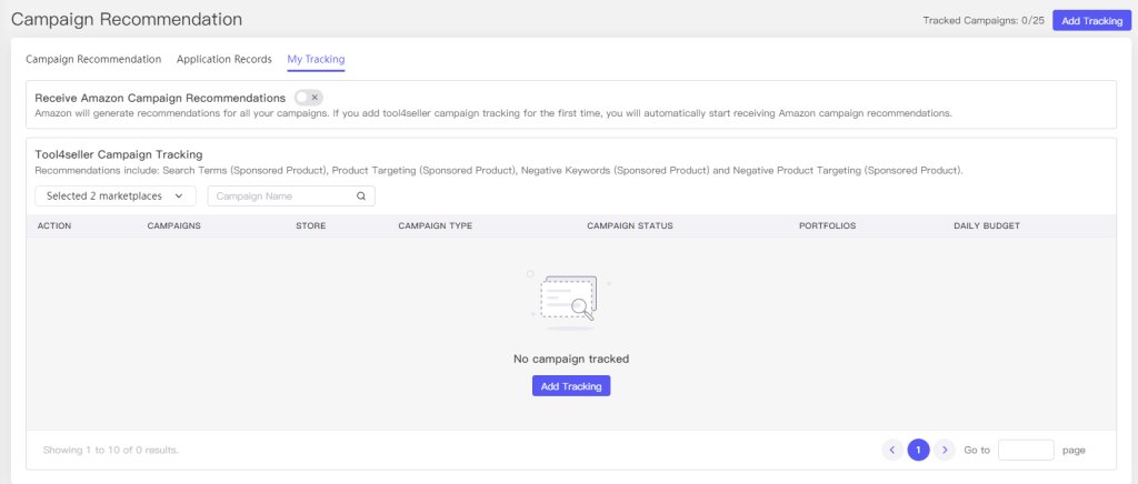 Note: Once you complete advertising connection, you will automatically receive Amazon campaign recommendations. This will not comsume any tracking credits.