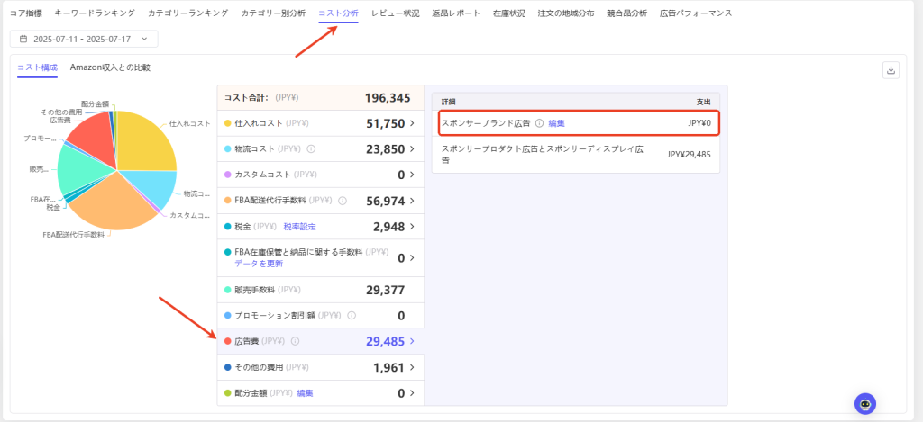 本機能では、広告クリエイティブ素材に含まれる商品情報を解析し、スポンサーブランド広告費における商品別費用の配分ロジックを独自に再構築します。これにより、利益・利益率の計算が実際のビジネス状況をより正確に反映するようになります。